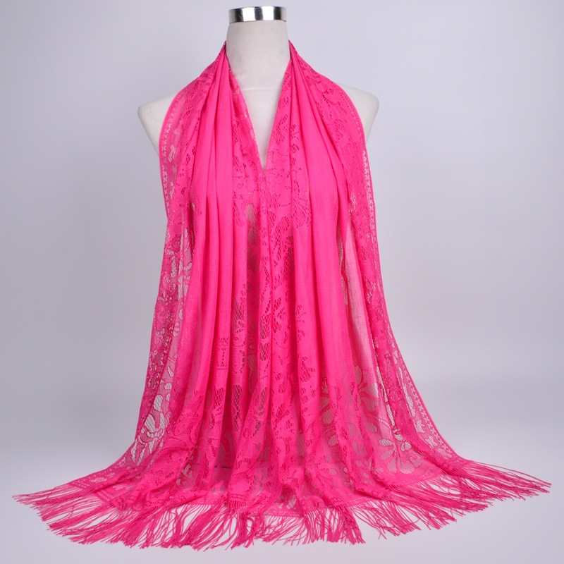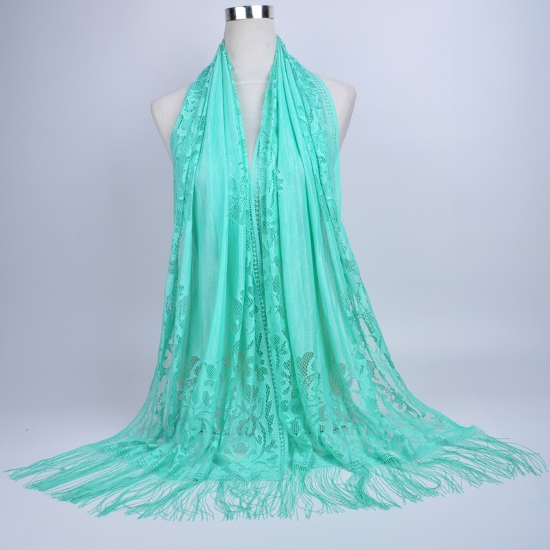 Muslim scarf cover, solid color lace hollow tassel scarf, women’s summer Malaysian long scarf shawl