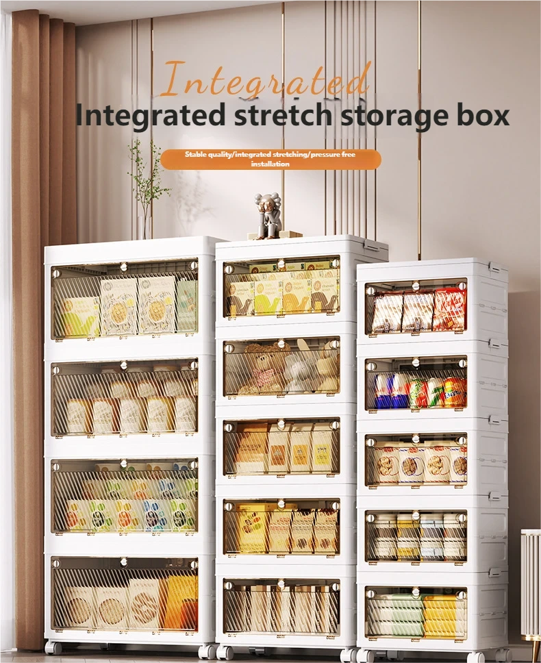 Buckle integrated stretchable foldable storage cabinet, bedroom living room plastic storage cabinet, multi-layer miscellaneous storage cabinet