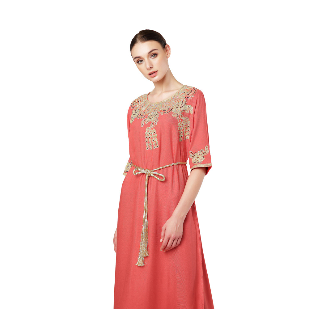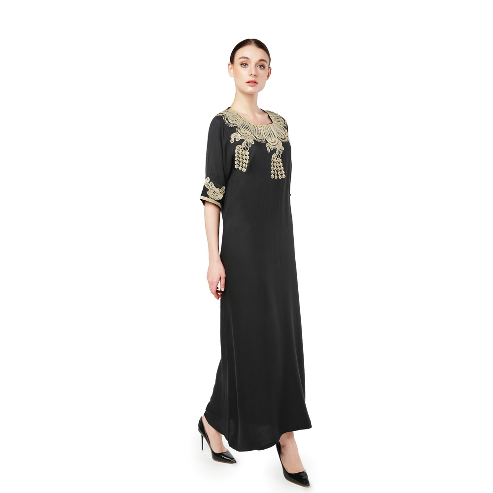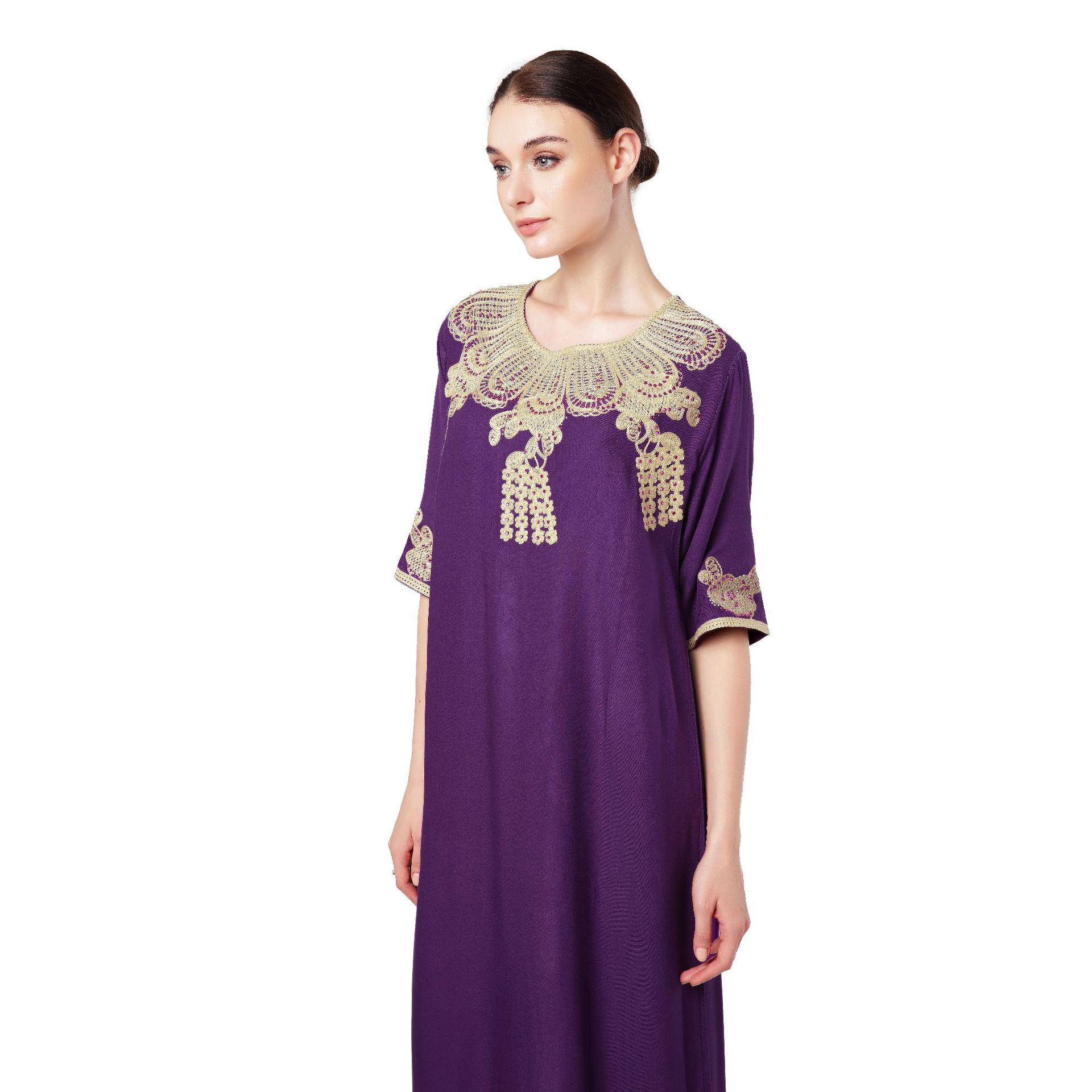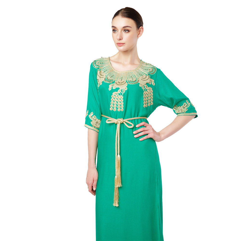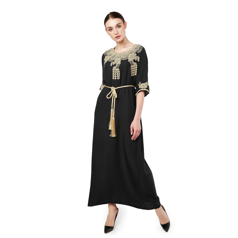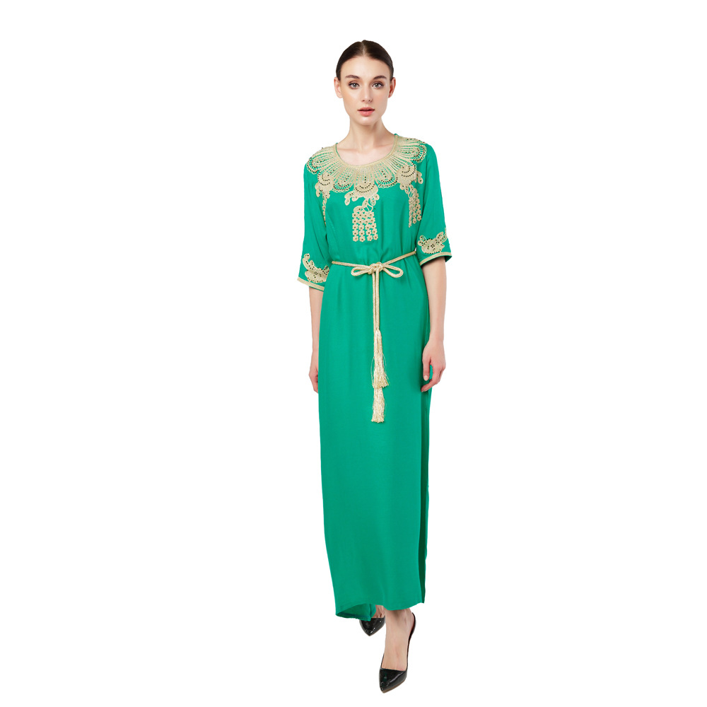 Be the first to review “Türkiye Muslim Women’s Embroidery Lace up Short Sleeve Abaya Robe Dubai Swing Dress Middle East Style” 取消回复