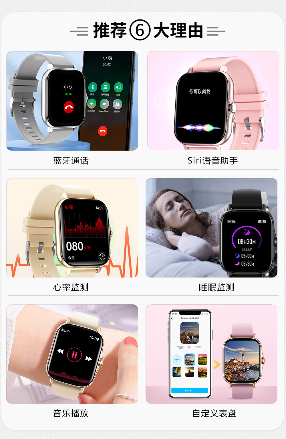 Touch screen smart watch, sports waterproof multifunctional heart rate detection, dynamic Bluetooth call watch