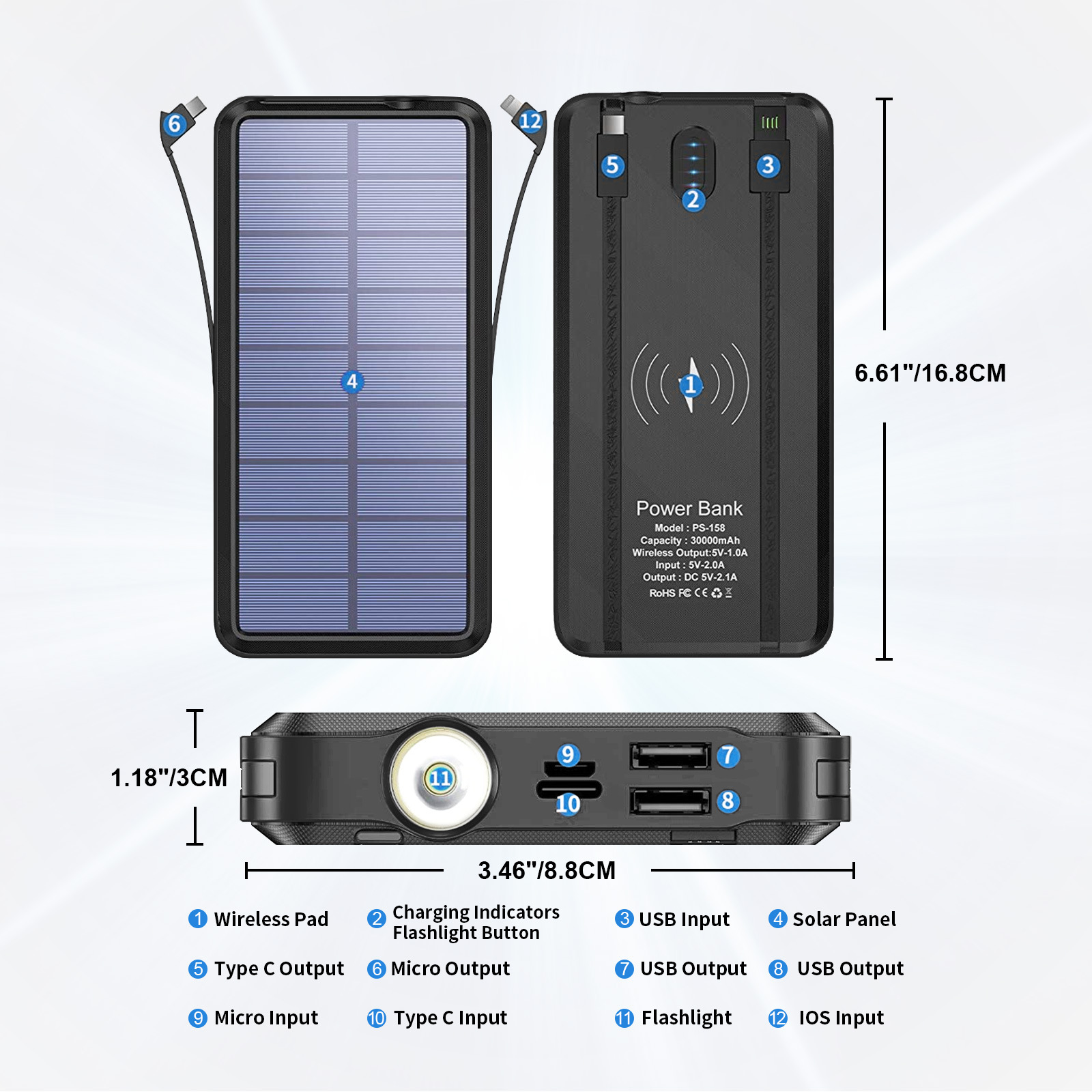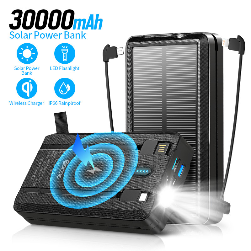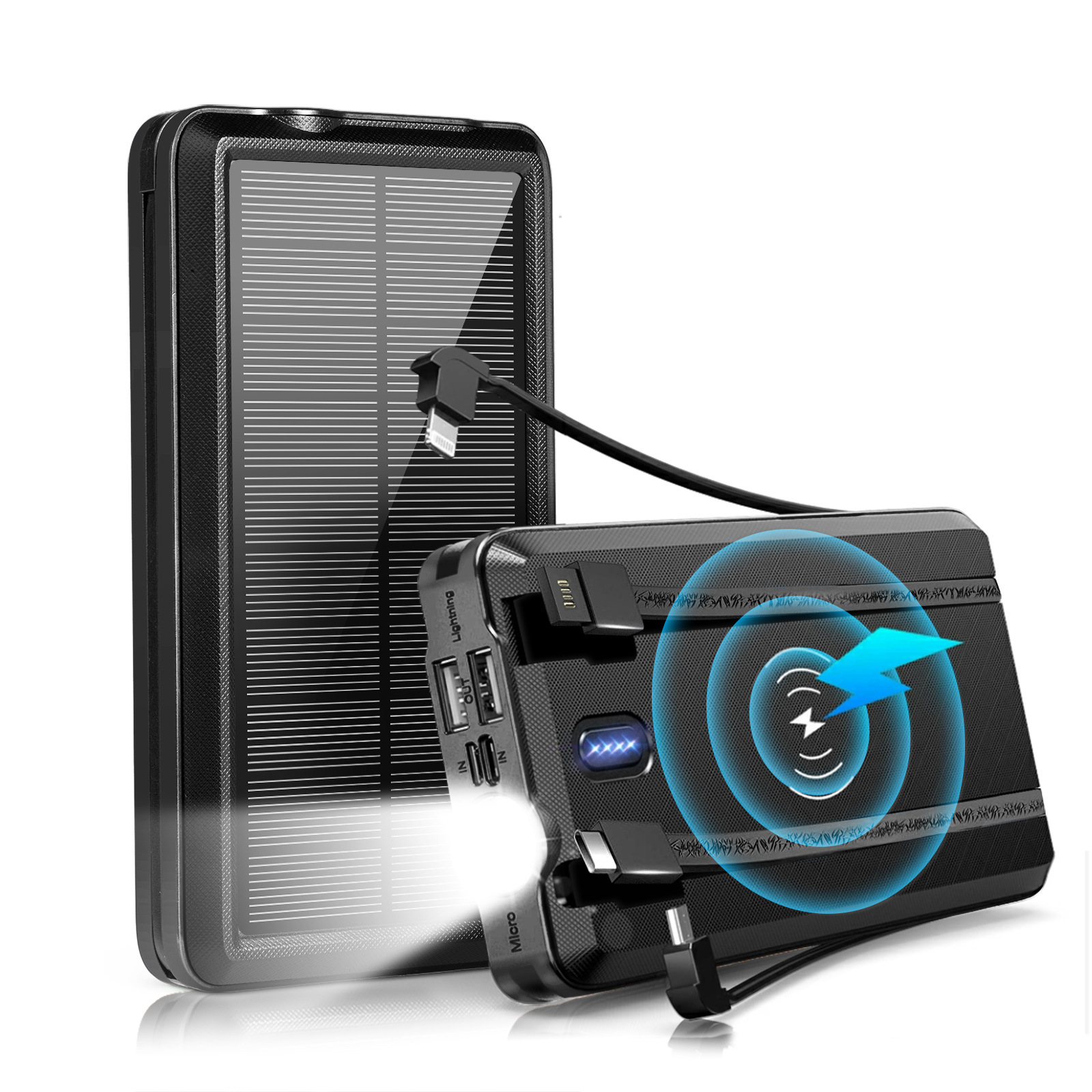 Private model comes with 4-wire solar wireless charging treasure 30000 mAh bidirectional fast charging mobile phone mobile power factory