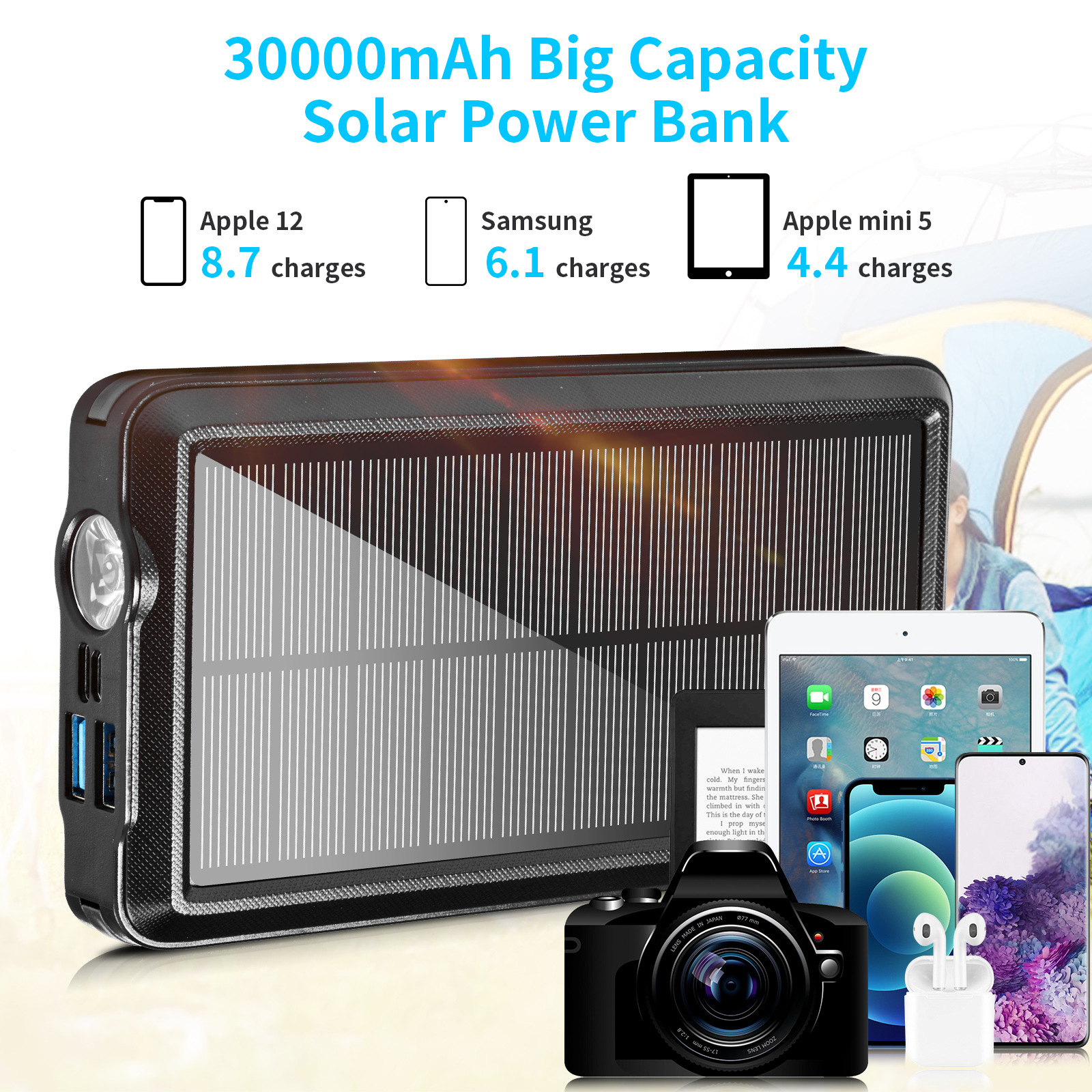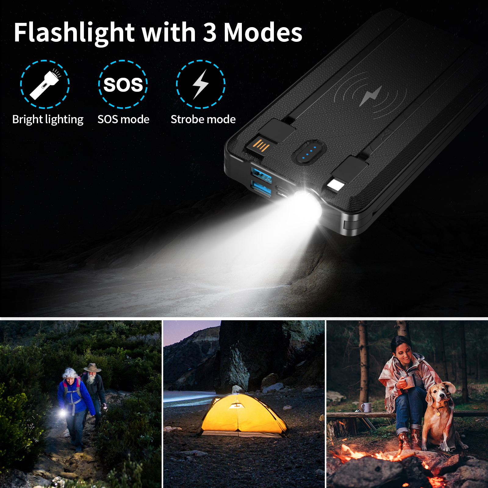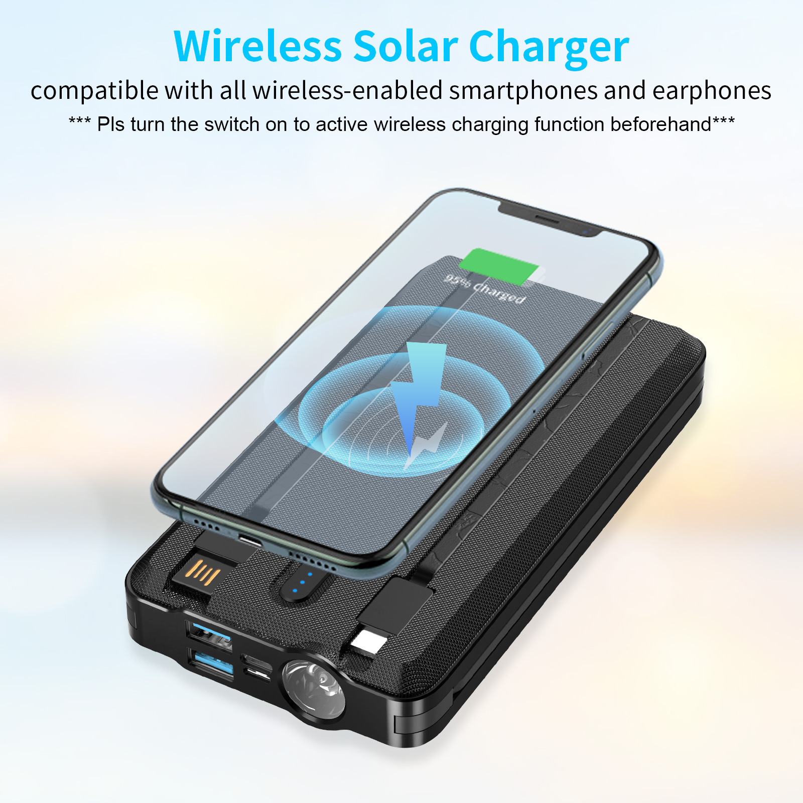 Private model comes with 4-wire solar wireless charging treasure 30000 mAh bidirectional fast charging mobile phone mobile power factory