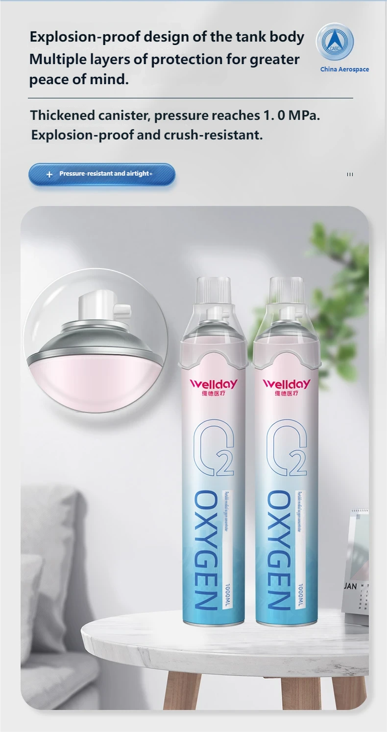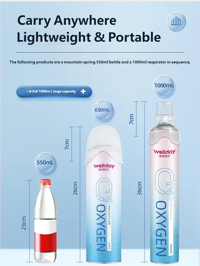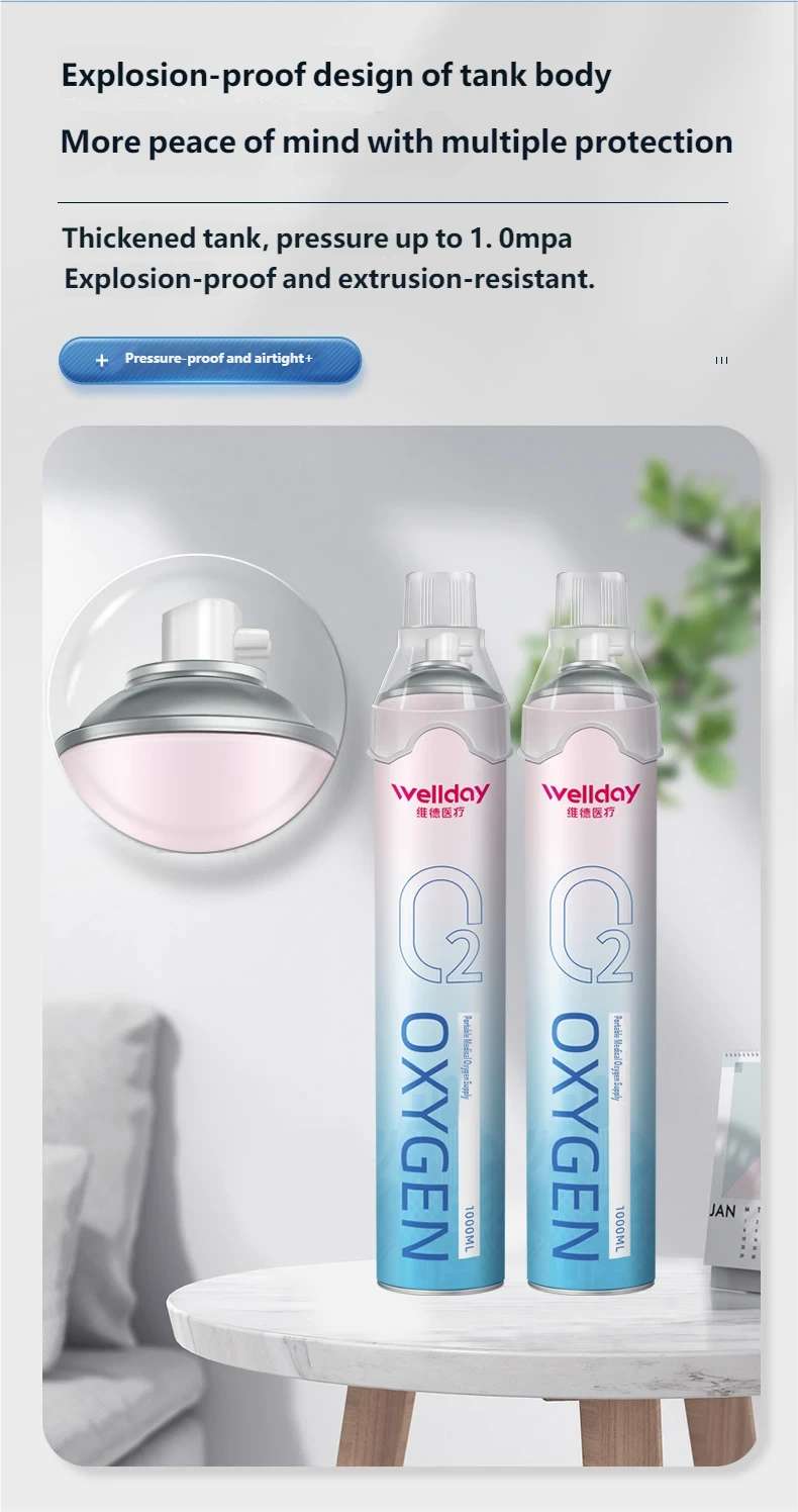 Weide Medical Oxygen Bottle Portable 1000ML Pregnant and Elderly Home High Altitude Hypoxia Emergency Small Oxygen Absorber
