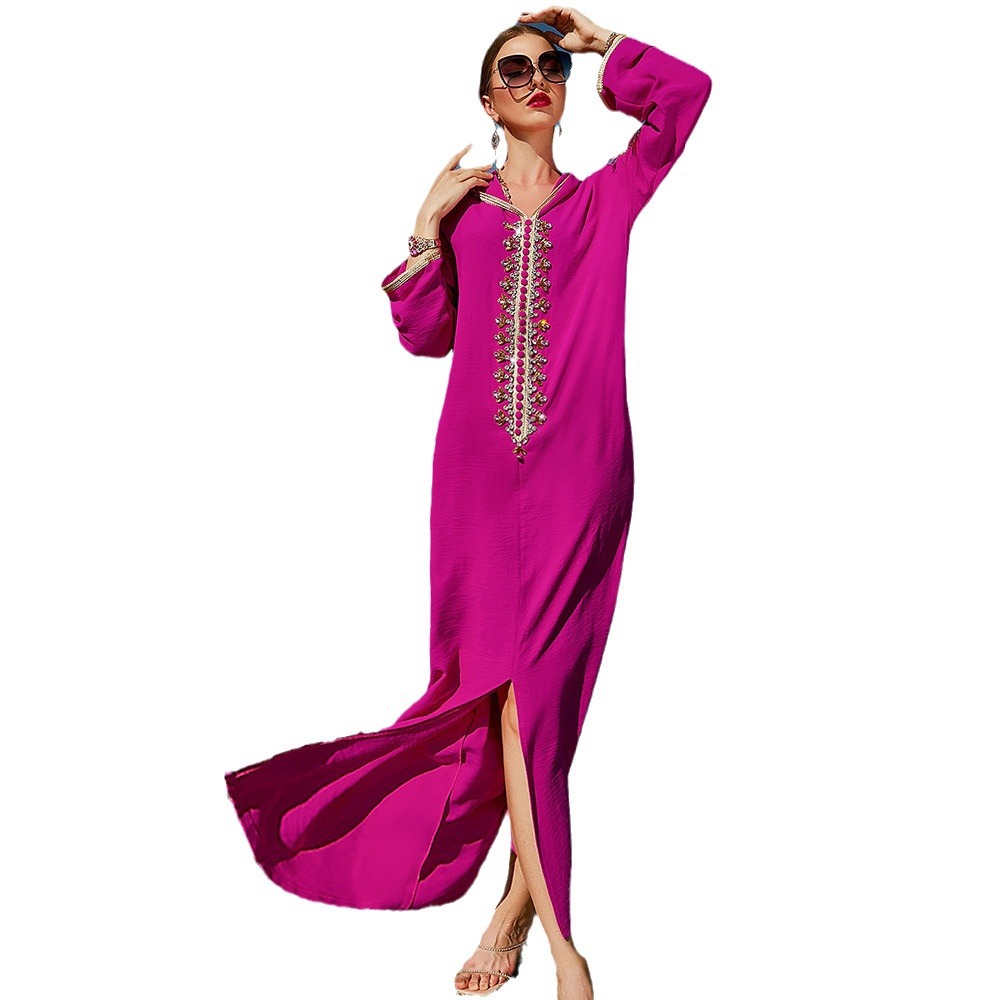 BA7058 New Rose Red Hat Middle Eastern Moroccan Dubai Style Hand sewn Diamond Robe Long Dress