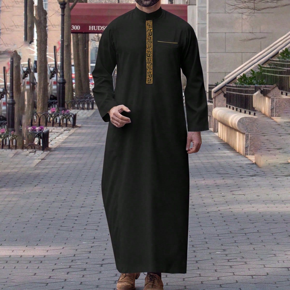 Plain-colored Middle Eastern Arab pocketed robe with buttons, simple and large size, men’s Muslim robe