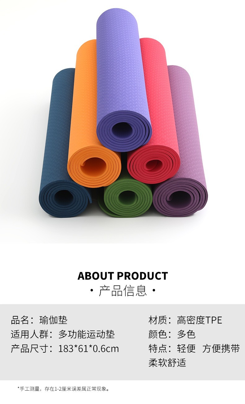 Be the first to review “TPE monochrome 183 * 61 * 0.8cm yoga mat thickened anti slip fitness skipping rope portable manufacturer straight yoga mat” 取消回复