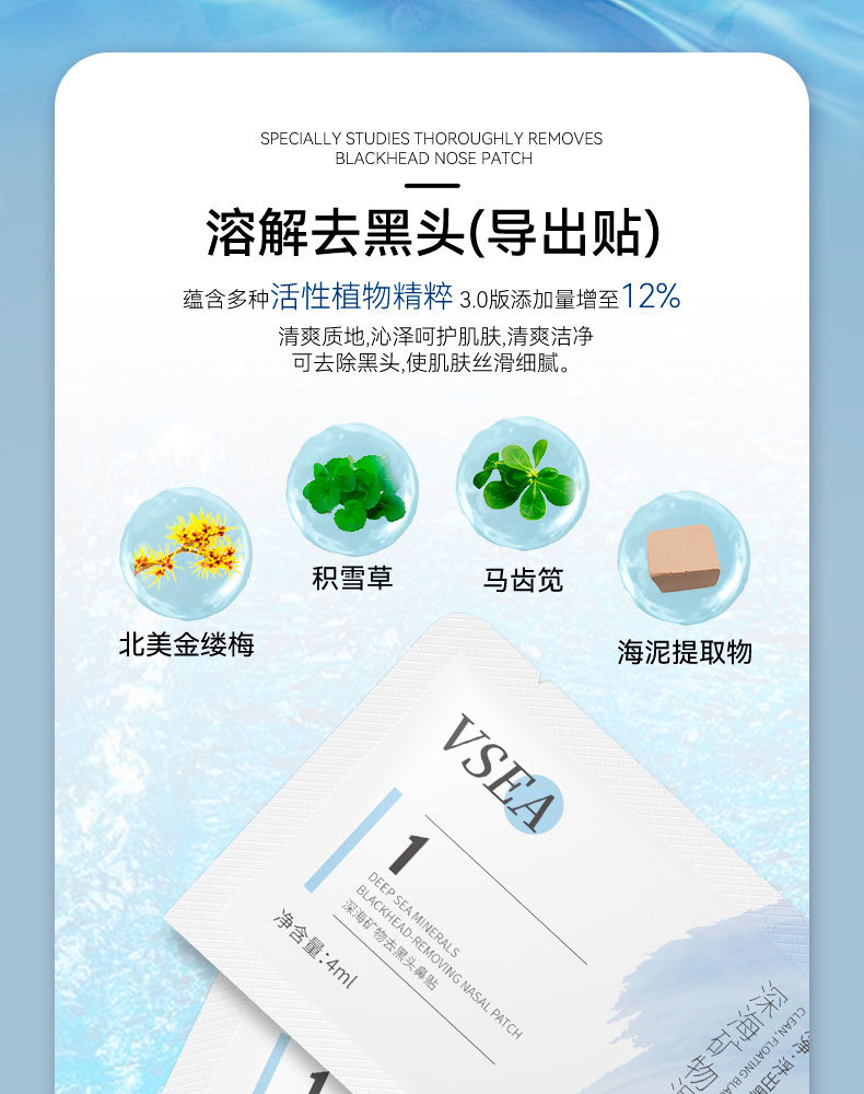 “Blackhead removal patch, pore shrinking, acne cleaning, water-washable nose patch, boxed, wholesale, skin purification, blackhead removal”